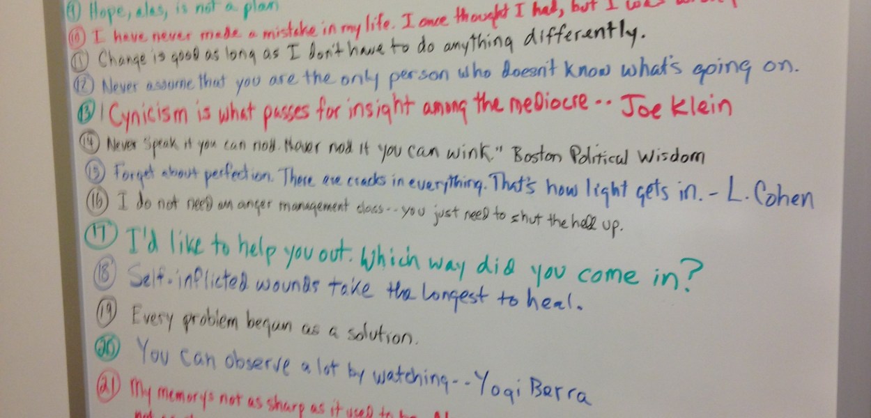 For the last several years, I have had a white board in my office on which I have written a number of adages (currently 24) that have come to mean something to me over the years. The list changes now and then, with new entries supplanting older ones […]
